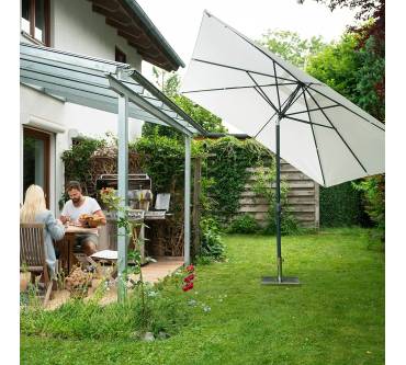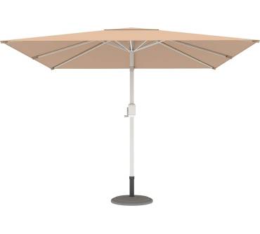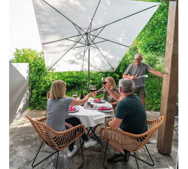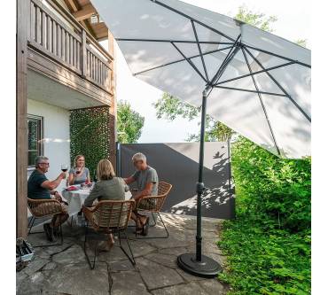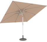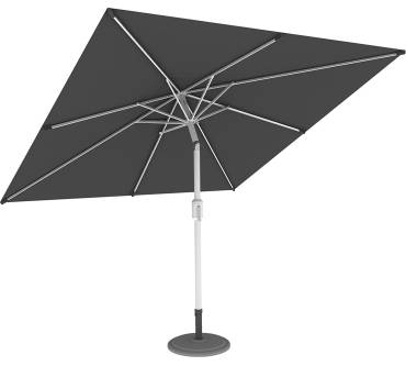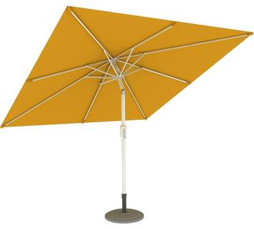 Der Paramondo Interpara ist ein quadratischer Sonnenschirm mit großer Spannweite. Er ist 3 x 3 Meter groß und lässt sich problemlos in verschiedene Richtungen kippen. Der Polyester-Bezug ist in vielen Farben erhältlich. Besondere Pluspunkte sind, dass der Bezug bei 30 Grad Celsius in der Waschmaschine waschbar ist und einen UV-Schutz von 30+ bietet. Auf der anderen Seite stehen leider die Mängel. So ist der Schirm aufgrund seiner Größe und Verarbeitung sehr windanfällig. Sie sollten ihn schon bei einer leichten Brise einklappen. Auch ist dieser Sonnenschirm nicht höhenverstellbar. Der Kurbelmechanismus zum Öffnen ist störanfällig. Kunden bemängeln zudem, dass das Gewinde nach kurzer Zeit defekt ist und sich der Schirm dann nicht mehr öffnen lässt. Ein Sonnenschirm mit einer besseren Leistung ist der Hoaa von Sekey.