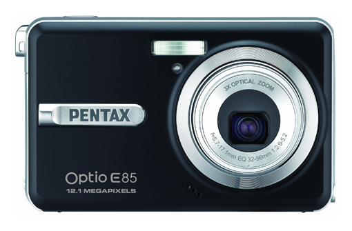 Die Pentax Optio E85 nimmt Fotos in einer Auflösung von 12,1 Megapixeln auf und besitzt einen 3fachen optischen Zoom. Dieser deckt einen typischen Brennweitenbereich zwischen 32 und 96 Millimetern ab. Die E85 kann auch kleine Videos aufzeichnen, die in 640 x 480 Bildpunkte aufgelöst und mit einer Rate von 30 Bildern in der Sekunde gespeichert werden. Dazu können übrigens SD- oder SDHC-Speicherkarten verwendet werden. Der interne Speicher ist eher ungeeignet: Er fasst lediglich eine Kapazität von sechs Megabyte.