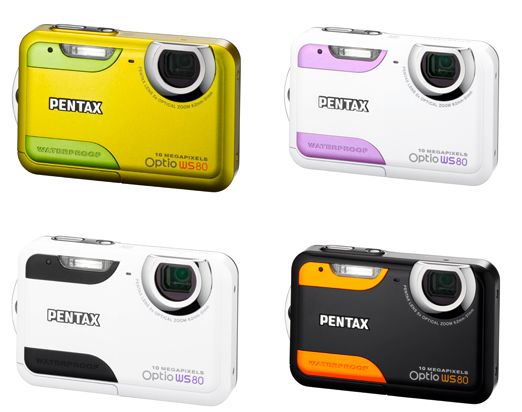Pentax schickt mit der Optio WS80 eine weitere wasserfeste Kompaktkamera auf Tauchgang. Die 10-Megapixel-Kamera hält bis zu zwei Stunden in einer maximalen Wassertiefe von 1,5 Metern aus. Auch Staub und Sand – am Strand ja reichlich vorhanden – soll der speziell abgedichteten WS80 nichts anhaben können. Das Objektiv der Kamera bietet einen etwas größeren Brennweitenbereich, durch seinen 5fachen optischen Zoom (35-175 Millimeter). Dieser fährt – wie bei wasserfesten Kameras üblich – nicht aus dem Gehäuse aus und somit behält die Kamera stets ihre sehr kompakte Form. Die eigenen Aufnahmen können auf einem 2,7 Zoll großen Display betrachtet werden, der eine Auflösung von 230.000 Pixeln aufweist.
