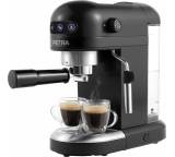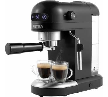 Die Espressomaschine mit Milchaufschäumer PT5240 von Petra eignet sich für die Zubereitung von ein und zwei Tassen in einem Arbeitsgang. Das kompakte Design macht sie für kleine Küchen interessant. Zudem ist sie ideal, wenn Sie nur gelegentlich Spezialitäten mit Milchschaum genießen möchte: Diesen stellen Sie über eine Dampfdüse her. Die Bedienung erfolgt über drei übersichtliche Knöpfe für Kaffee und Dampf. Diesen regeln Sie über ein seitliches Drehrad. In den Wasserbehälter ist Platz für 1,4 Liter. So brauchen auch Vieltrinker den Tank nicht täglich auffüllen. Die Pumpe erzeugt einen Druck von bis zu 15 Bar. In aller Regel genügt das, um die idealen 9 Bar Wasserdruck zu realisieren, die für aromatischen Espresso notwendig sind. Ablesbar ist der erzeugte Druck jedoch nicht. Bei einer Einsteigermaschine ist das Feature nicht unbedingt zu erwarten. So sind die aktuell gültigen rund 180 Euro Verkaufspreis insgesamt fair kalkuliert.