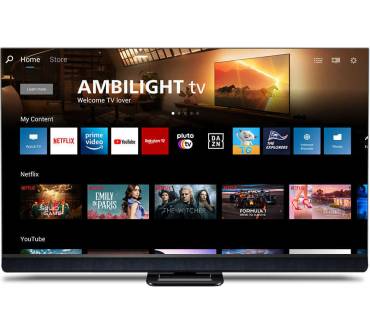 Als Teil der „The Xtra“-Serie kein sehr günstiger Ultra-HD-Fernseher, aber dafür ein richtig guter und gut ausgestatteter. Schon die Philips-typische Gehäuse-Illuminierung „Ambilight“ macht was her. Das 120Hz-Display, mit einem Diagonalenmaß von 139 Zentimetern quasi „idealgroß“, will in Hinsicht auf die Wiedergabequalität an vergleichbare OLED-Komponenten herankommen. Tatsächlich gelingt es, aufgrund der wiederum verbesserten MiniLED-Technologie - feinere LED-Elemente sind präziser ansteuerbar als konventionelle. Farben, Kontraste, die Darstellung von Bewegtbildern generell, Umsetzungen von Games - alles profitiert. Support gibt es seitens der AI-Bildsignalverarbeitung unter anderem für die dynamischen HDR-Verfahren HDR10+ und Dolby Vision. Sogar die „Bowers & Wilkins“-Soundausgabe taugt was. Dank des „Dolby Atmos“-kompatiblen 2.1-Kanäle-AI-Klangs können Erweiterungen mit externen Audiokomponenten erstmal warten. Die herstellereigene SmartTV-Software hat man ebenfalls verbessert, für Sprachsteuerung ist jedoch - mangels Mikrofonen - separat zu beschaffende Hardware erforderlich.