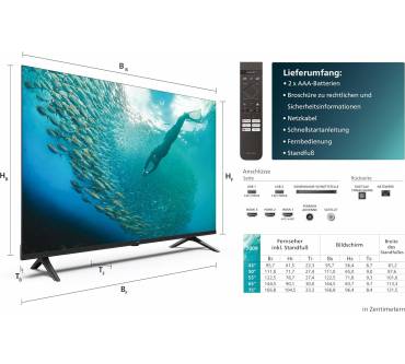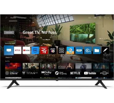 Der 55PUS7009 punktet mit idealer Bildgröße, die in den meisten Wohnzimmern gut unterkommt und gleichzeitig anschaulich groß erscheint. Dank 4K-Auflösung wirken die Bilder auch bei sehr kurzen Sitzabständen knackscharf. Farben und Kontraste mit erhöhtem Dynamikumfang kommen in Form der Standards HDR10, HLG und HDR10+ auf den Schirm. Dass der beliebte und weit verbreitete HDR-Standard Dolby Vision fehlt, ist wiederum ein kleiner Wermutstropfen. Zugriff auf eine Vielzahl an Smart-TV-Diensten wird hier mithilfe der Plattform Titan OS möglich. Im Unterschied zu den meisten anderen Systemen sind die Apps hier als Web-Apps auf einem Server und nicht direkt auf dem TV gespeichert. Aus diesem Grund müssen Sie Netflix, Disney+ und Co. nicht updaten. ALLM und VRR erleichtern obendrein das Spieleerlebnis, indem sie Bildfehler ausräumen (VRR) und Latenzen im Gaming-Betrieb auf ein Minimum reduzieren (ALLM). USB-Aufnahmen sind wiederum nicht drin, das populäre Philips-Feature Ambilight fehlt ebenfalls. Beim Klang bleibt Luft nach oben: Wir empfehlen mit einer Soundbar nachzubessern.