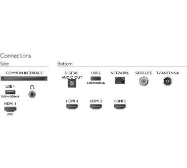 Das Display mit leicht überdurchschnittlicher Hintergrundbeleuchtung wird am Fernseher Philips 55PUS8007 durch das dreiseitige Ambilight zusätzlich intensiviert. So lässt er sich zwar nicht überall aufstellen, kann vor einem weißen, ebenen Hintergrund dafür umso mehr überzeugen. Auch der Funktionsumfang bietet keine Angriffsfläche. Bis auf die Aufnahmefunktion auf USB stehen über die Anschlüsse viele Möglichkeiten bereit. Es gibt ausreichend Stecker für Video- und Tonsignale, aber leider ohne (nur noch selten genutzten) analogen Video-Eingang. Der Smart-TV mit Android gewährt Zugriff auf fast jeden Streamingdienst, erlaubt die Übertragung von Inhalten von Smartphone oder Laptop ohne große Schwierigkeiten und lässt sich mit Smart-Home-Geräten koppeln. Darüber hinaus zeigen sich auch die Lautsprecher für die Größe angemessen dimensioniert. Entsprechend hoch gestaltet sich zwar der Preis, der sich bei Nutzung des Smart-TVs, der vielen Anschlüsse und der ordentlichen Ausstattung jedoch lohnt.