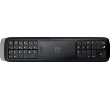 Die Fernbedienung ist perfekt auf den Smart-TV zugeschnitten. Rückseitig befindet sich eine Tastatur, die längere Eingaben erheblich erleichtert. Es gibt außerdem ein Swipepad, dass auf Wischgesten reagiert. Ungeübte Nutzer können diese Funktion deaktivieren und das Pad wird anschließend zu einem klassischen Steuerkreuz.