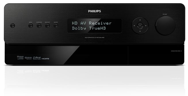 Der AV-Receiver Philips AVR9900 unterstützt die neuen HD-Tonformate, darunter Dolby TrueHD und DTS HD High Resolution Audio. Die sieben Kanäle werden im Surround-Betrieb mit jeweils 60 Watt an acht Ohm befeuert.