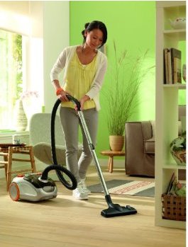 In die Kategorie Benutzerfreundlichkeit wiederum fällt das Entleerungssystem des EasyLife EnergyCare FC8146/01. Auf Knopfdruck gibt der Staubsauger die gesammelten maximal 1,7 Liter Staub, Haare, Krümel und anderen Schmutz frei. Da das Gerät keine Staubbeutel benötigt, entfällt natürlich auch deren lästiges Austauschen und Nachkaufen. Dank eines HEPA-Filters eignet sich der EasyLife EnergyCare FC8146/01 auch für Allergiker und Asthmatiker. Und Achtung Altbau-Bewohner: Zum Lieferumfang des EasyLife EnergyCare FC8146/01 gehört auch eine spezielle Bürste, die besonders pfleglich und sorgsam mit dem Parkett umgehen soll. Und da der Staubsauger mit seinem sieben Meter langen Kabel sowie dem Raster-Teleskoprohr eine Reichweite von 10 Metern besitzt, sind auch größere Räume schnell gereinigt.