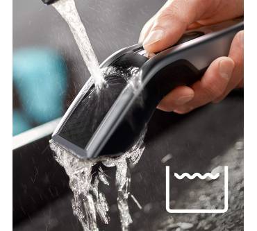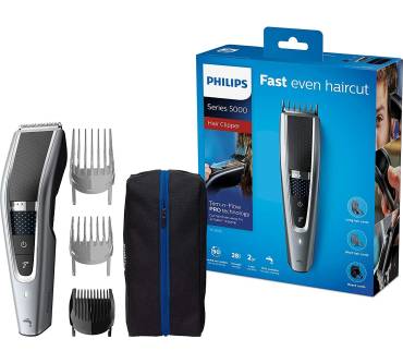 Der Haarschneider HC5630/15 Series 5000 von Philips bringt Ihre Frisur auf Längen zwischen 0,5 Millimeter (ohne Aufsatz) und 28 Millimeter (mit einem von zwei Aufsätzen). Die Längeneinstellung nehmen Sie direkt am Gerät über ein sogenanntes Zoom-Rad vor. Für kürzere Haare und das Trimmen Ihres Bartes verwenden Sie einen Zwei-Millimeter-Trimmaufsatz. Die Kämme sind so geformt, dass sich selbst längere Haare nicht darin verfangen sollen. So gelingt das Haareschneiden schneller und reibungsloser. Die Nutzer zeigen sich mit der Handhabung und den Ergebnissen jedenfalls zufrieden. Sie loben die Schneidleistung sowie die Verarbeitung. Praktisch ist ebenfalls, dass Sie den Trimmer unter Wasser reinigen können. Der Akku hält bis zu 90 Minuten durch. Da ist noch Luft nach oben. Da dies der einzige Minuspunkt ist, kann der Kauf empfohlen werden – zumal Sie mit knapp 50 Euro einen guten Preis zahlen. Bauähnlich mit geringerer Akkukapazität, aber für eine noch geringere Investition hat Philips den HC5612/15 Series 5000 im Programm.