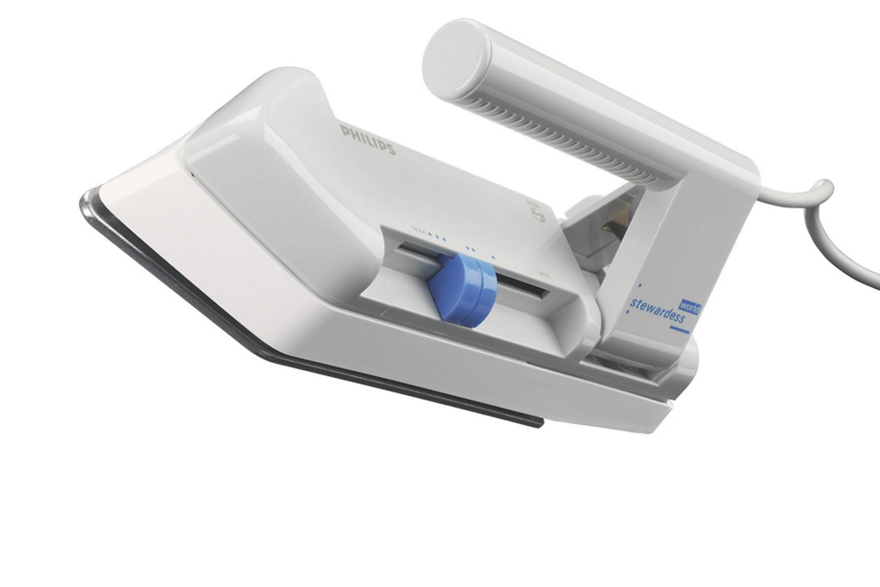 Jeder Zentimeter im (Hand-) Gepäck ist verplant, jedes Gramm genau berechnet, ein Bügeleisen für den Notfall muss aber trotzdem unbedingt noch mit auf Reisen? In diesem Fall empfiehlt sich der Griff zum HD 1301. Das von Philips vertriebene Gerät führt nicht ohne Grund den Zusatz „Stewardess“ in seinem Produktnamen, die außergewöhnlich kantige Gehäuseform wiederum hat ihren speziellen Grund – und wenn das Bügeleisen darüber hinaus von Haus aus auch noch über etwas mehr Power verfügen würde, wäre es vermutlich der ideale Reisebegleiter.