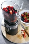 „Die zwei Klingen des robusten Standmixers laufen mit unterschiedlicher Geschwindigkeit in entgegengesetzte Richtungen. Der Mixer hat einen kräftigen 850-Watt-Motor. Sein Glasbehälter fasst 2 Liter.“