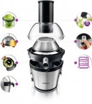 Darüber hinaus fällt der Einfüllstutzen außergewöhnlich großzügig aus – er misst satte acht Zentimeter im Durchmesser. Bei nicht wenigen Konkurrenten entpuppt sich dieses Bauteil häufig im übertragenen Sinne als Nadelöhr, das deswegen einen höheren Vorbereitungsaufwand nach sich zieht. Beim Entsafter von Philips hingegen entfällt in vielen Fällen das Vorschneiden von Obst oder Gemüse. Die Leistungsaufnahme wiederum beträgt 800 Watt, also ausreichend genug, um selbst hartschaligere beziehungsweise härtere Obst- oder Gemüsesorten verarbeiten zu können. Zudem besteht die Auswahl zwischen zwei Stufen für entweder weiche oder harte Lebensmittel.