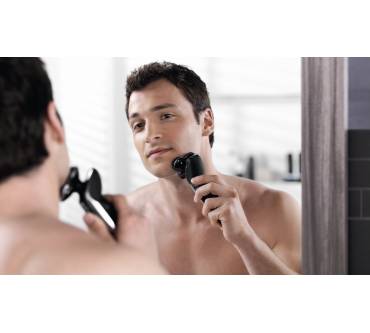 Der Elektrorasierer ist mit so ziemlich allem an Technik ausgestattet, was eine besonders gründliche Rasur ermöglichen soll. Die Scherköpfe zum Beispiel sind flexibel gelagert, damit sie sich möglichst optimal den Konturen des Gesichts anpassen, vor allem natürlich an den bekannten Problemstellen. Die Scherköpfe selbst wiederum sind mit unterschiedlich geformten Klingenkränzen bestückt, die jeweils eine Spezialgebiet, also etwa besonders kurze oder lange Barthaare, haben. Die Haare werden vor dem Abschneiden außerdem noch „aufgestellt“, damit sie effektiv abrasiert werden können. Zudem ist das Gerät absolut wasserdicht und erlaubt daher auch eine Nassrasur mit oder ohne Schaum – es spricht nichts dagegen, den Elektrorasierer einfach unter die Dusche mitzunehmen, wie von etlichen Benutzern tagtäglich praktiziert, und jeden Morgen zeit zu sparen. Zum Lieferumfang gehören eine Reiseetui sowie eine Lade- und eine Reinigungsstation, wobei letztere nicht immer auch zur Anwendung kommt. Sie muss nämlich mit einer speziellen Reinigungsflüssigkeit gefüllt werden, da sich der Rasierer aber auch leicht händisch reinigen lässt, verzichten sparen sich nicht wenige die Zusatzkosten sowie im selben Atemzug auch die Aufstellung des recht klobigen Geräts.