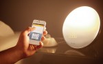 Zusätzlich zur Lichtweckerfunktion verfügt das HF3550 Wake-up Light eine Dockingstation, auf der ein iPhone (4S/4/3GS) oder einen iPod Touch (3./4. Generation, mindestens iOS 5) platziert werden kann. Mit den beiden Mobilgeräten sowie einer App lässt sich damit über die Station der Lichtwecker steuern.