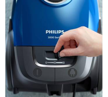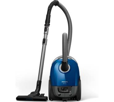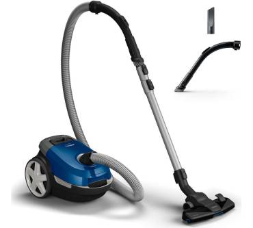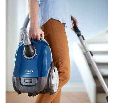 Der Bodenstaubsauger von Philips ist ein Vertreter der klassischen Beutelstaubsauger. Das Fassungsvermögen des Staubbehälters fällt mit 3 Liter durchschnittlich aus. Das Teleskoprohr des Saugers ist zweigeteilt und aus Metall gearbeitet. Er trägt das ECARF-Siegel für allergikerfreundliche Staubsauger, die im alltäglichen Betrieb eine messbar reduzierte Allergenbelastung im Innenraum erreichen und die eingesaugten Allergene sicher einschließen. Mit im Lieferumfang dabei sind eine Universal-Bodendüse, eine Fugendüse und eine integrierte Bürste, die Ihnen nach dem Abnehmen des Saugrohrs sofort zur Verfügung steht. Die großen Laufrollen sind gummiert, um Schäden an empfindlichen Böden und am Mobiliar zu vermeiden. Der Aktionsradius des Philips wird mit durchschnittlichen 9 Meter angegeben. Mit einem Lärmwert von 79 Dezibel gehört der Sauger nicht zu den besonders leisen Modellen. Der Sauger ist mit einem Gewicht von 4,6 Kilogramm nicht übermäßig schwer, Sie können ihn an einem integrierten Griff tragen.