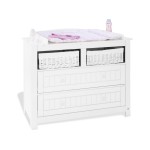 Auch bei der Fächereinteilung präsentiert sich die Nina großzügig: Die Wickelkommode aus massiver, weiß lackierter Fichte bietet sowohl Schubkästen mit Selbsteinzug als auch offene Fächer für den reaktionsschnellen Einhand-Zugriff auf die wichtigsten Baby-Utensilien. In den Abmessungen erreicht sie 119 x 75 x 103 Zentimeter in Breite, Tiefe und Höhe. Wie viel indes hiervon als reine Wickelfläche zur Verfügung steht, ist vom Hersteller leider nicht zu erfahren. Immerhin gibt es jeweils seitlich neben dem Wickelaufsatz noch zusätzliche Abstellfläche, die sich erfahrungsgemäß für die Ablage von Pflegeprodukten oder das ein oder andere Spielzeug als ausgesprochen praktisch erweist. Darüber hinaus steht ein Sicherheitsrand zum Schutz des Kindes gegen das seitliche Abrollen bei den ersten Dreh- oder Krabbelversuchen zur Verfügung.Lässt sich leicht bedienen