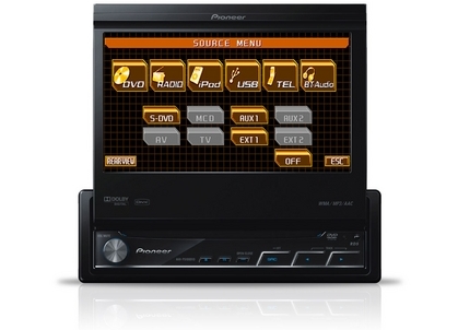 Dem AVH-P5100DVD hat Pioneer einen motorisierten Touchscreen-Monitor mit einer Diagonale von 17,8 Zentimetern spendiert, über den man das komplette System bedienen und Filme anschauen kann.
