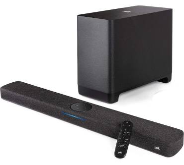Die Soundbar Polk Audio React 2.1-Set muss schon zur Wahrung ihres guten Namens detaillierten und kraftvollen Klang liefern. Das gelingt dank zusätzlichem Subwoofer vor allem bei den tiefen Frequenzen gut. Weil dieser lediglich ein Stromkabel benötigt, aber mit der Soundbar selbst kabellos kommuniziert, lässt er sich zudem freier aufstellen, um zum Beispiel direkt am Sofa die Bässe zu spüren. Allerdings finden sich auch eine ganze Reihe Rezensionen, die bei hohen Tönen und auch Sprache nicht ganz so viel Begeisterung versprühen. Für knapp 500 Euro sind die Erwartungen jedoch auch hoch angesetzt. Die Sprachsteuerung gelingt per Amazon Alexa, worüber auch weitere Funktionen bereitstehen. Für Google und andere Smart-Home-System eignet sich die Soundbar leider nicht. Darüber hinaus hätten gern noch ein paar mehr Anschlüsse verbaut werden dürfen, auch wenn zumindest alle wichtigen Eingänge vorhanden sind.