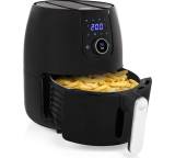 Mit dieser Heißluftfriteuse von Princess bereiten Sie unkompliziert Pommes und mehr für die ganze Familie zu. Der Garkorb fasst ordentliche 4,5 Liter bzw. 1,2 kg Frittiergut. Die Einstellungen erledigen Sie bequem am digitalen Bedienfeld mit zusätzlichem Drehrad. Dabei können Sie 8 voreingestellte Programme nutzen oder individuell Temperatur und Garzeit bestimmen. Letzteres ist laut Nutzerberichten empfehlenswert, da die Automatikparameter keine guten Ergebnisse bringen. So werden beispielsweise Garnelen zäh und benötigen mehr Zeit als bei der manuellen Zubereitung in der Pfanne. Pommes Frites müssen oft gewendet werden, um zufriedenstellend knusprig und gar zu werden. Mit etwas Übung in den eigenen Anpassungen gelingen aber alle Gerichte zufriedenstellend. Praktisch ist der spülmaschinenfeste Korb, der die Reinigung erleichtert. Auch optisch überzeugt das Produkt; die glänzend schwarze Oberfläche ist aber empfindlich für Fingerabdrücke.