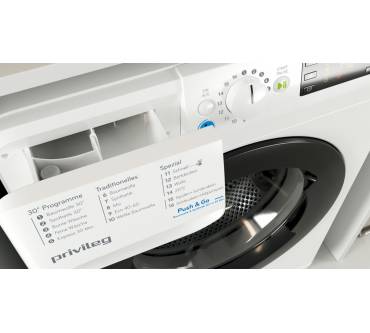 Das Bedienfeld der PWF X 753 N von Privileg ist übersichtlich und erleichtert Ihnen das schnelle Finden des passenden Programmes: In 3 Spalten sind die 30-Grad-Einstellungen, Basics wie Baumwoll- und ECO sowie die Gruppe Spezialprogramme angeordnet. Als praktisches Extra können Sie mit dem „Push&Go“ Knopf eine Ladung Mischwäsche ohne Drehrad starten. Dabei werden Wasser- und Stromverbrauch automatisch an die Beladung angepasst („WaterBalance“). Die Startzeit stellen Sie nach Bedarf vorab ein, für die schnelle Wäsche zwischendurch können Sie ein 30-Minuten Kurzprogramm wählen oder die Waschzeit beschleunigen. Flecken beseitigen Sie mit einer Extra-Funktion. Eine eigene Einstellung für Sport- oder Outdoorkleidung gibt es nicht. Die Privileg liegt hinsichtlich Energieverbrauch im guten Bereich und ist preislich fair angesetzt.