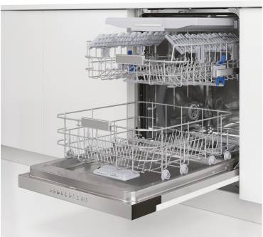 Wenn Sie einen gut ausgestatteten Geschirrspüler suchen und Ihr Budget weniger belasten wollen, ist der RBO 3T131 A F X von Privileg eine Option. Laut Test bringen Sie sogar mehr als die vom Hersteller angegebenen 14 Gedecke unter und können den Oberkorb auch beladen noch verstellen. In der flexiblen Besteckschublade können Sie auch sperrige Teile wie Suppenkelle und Nudelzange platzieren. Die Programmauswahl kann sich sehen lassen und deckt praktisch alle Anforderungen ab. Unter anderem finden Sie eine „Fast&Clean-Einstellung“, die Ihnen in 28 Minuten sauberes Geschirr liefert. Mit der„ Push&Go-Taste“ starten Sie das Gerät praktisch im Vorbeigehen. Wie lange die Privileg noch benötigt, müssen Sie allerdings erahnen - eine Restzeitanzeige fehlt.