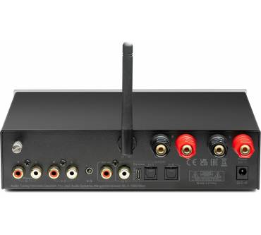 Ist ein kleiner, aber feiner HiFi-Verstärker gefragt, kommt Pro-Jects Stereo Box E wie gerufen, weil kompakt, anschlussfreudig und bezahlbar. So stehen rückseitig drei digitale und drei analoge Eingänge bereit, darunter ein Phono-Eingang für Plattenspieler mit MM-Tonabnehmer. Bluetooth gehört bei Pro-Ject ebenfalls zum guten Ton, demnach können Sie Musik vom Smartphone drahtlos zuspielen. Will man in dieser Beziehung überhaupt etwas kritisieren, dann vielleicht die fehlende HDMI-ARC-Buchse für Tonsignale vom Fernseher. Stolpern lässt einen eher die Leistung, die mit 2 x 21 Watt an 8 bzw. mit 2 x 40 Watt an 4 Ohm ziemlich niedrig scheint. Laut „AUDIO/stereoplay“ jedoch kein Grund zur Sorge – weil die Stromversorgung sehr stabil ist, klingt es im Soundcheck kräftiger als erwartet. Selbst Lautsprecher mit geringem Wirkungsgrad sollen sich „mühelos und souverän“ antreiben lassen. Unterm Strich reicht es damit zu einer Kaufempfehlung.