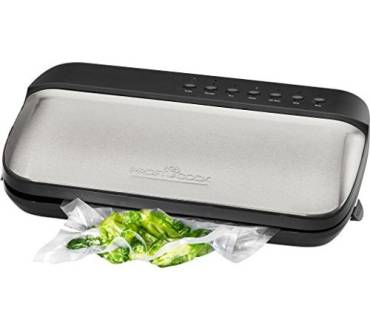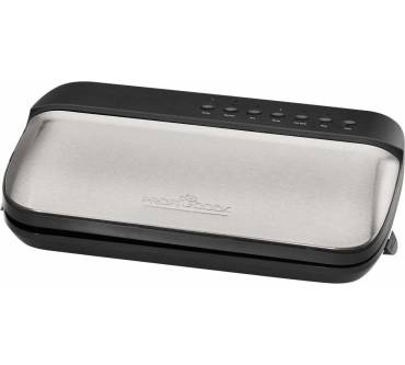 Mit rund 75 Euro zählt der PC-VK 1134 nicht zu den teuersten Geräten, dafür bietet er aber eine Menge Leistung und Ausstattung. Durch den 120 Watt starken Motor und den erzeugten Unterdruck von -0,8 bar entzieht er gut 90 Prozent der Luft. Dank der überdurchschnittlich hohen Saugleistung von 24 Litern in der Minute tut er dies darüber hinaus auch noch sehr schnell. Damit auch Flüssigkeiten bedenkenlos haltbar gemacht werden können, besitzt das Gerät eine herausnehmbare Auffangrinne. Zudem lässt sich das Vakuum in 4 Stufen regulieren und somit an die Eigenschaften des jeweiligen Lebensmittels anpassen. Nachdem der Beutel mit einer extrabreiten Schweißnaht luftdicht verschlossen wurde, kann er durch ein integriertes Messer sicher abgeschnitten werden.