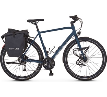 Mit seiner Starrgabel, zwei Flaschenhalteraufnahmen, den mitgelieferten Radtaschen und einem Extragepäckträger vorne präsentiert sich das Entdecker von Prophete geradezu als prototypisches Reiserad. Beim Vorankommen fordert das hohe Eigengewicht allerdings seinen Tribut, besonders bei Zuladung. Dafür kann der Rahmen im „Aktiv Radfahren“-Test mit Stabilität punkten. Die „Double Fighter“-Reifen von Continental setzen kaum Grenzen zwischen Stadt und Land: Mit ihrem mittig flachen Profil bringen sie das Prophete auf der Straße flott voran, während die groben Schulterstollen auf losem/weichem Untergrund Sicherheit vermitteln. Smartes Highlight ist das ins Schutzblech integrierte Rücklicht.