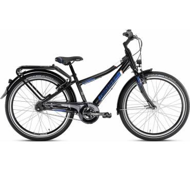 Stärken und SchwächenObwohl fast alle wesentlichen Komponenten des Bikes aus leichtem Aluminium sind, ist das Fahrrad mit 14 Kilogramm recht schwer und könnte den jüngsten Einsteigern Probleme bereiten. Allerdings ist es für mehrere Altersgruppen ausgelegt worden; die Sattelstange und der tiefe Trapezrahmen mit leicht gebogenem Oberrohr ermöglichen vielfältige Einstellmöglichkeiten. Laut einer Kundenrezension kann das Fahrrad ab 135 Zentimetern Körpergröße gerade so eben gefahren werden; wichtig ist, dass das Kind in der niedrigsten Sattelstellung mit den Beinen den Boden berühren kann. Der Hersteller gibt eine Schritthöhe (Maß vom Boden bis zum Schritt) von mindestens 59 Zentimetern an. Zusätzlich zu den V-Brake-Bremsen, bei denen das Bremsen zuvor gut geübt werden sollte, bietet die Rücktrittnabe eine zusätzliche, wartungsarme Rücktrittbremse. Dadurch können beim Bremsen auch Handzeichen gegeben werden. Die 7-Gang-Schaltung dürfte für den Stadtverkehr und weniger anspruchsvolle Touren genügen. Ein eindeutiges Plus ist die pannensichere Schwalbebereifung, die im Stadtverkehr schon fast unverzichtbar ist.