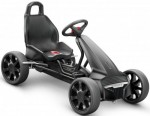 Ansonsten kann das F550 mit einem Vorwärts- und Rückwärtsgang sowie einer Freilaufautomatik aufwarten. Mit letzter ist es möglich, vom Vorwärts- zum Rückwärtsfahren ohne Schalten zu wechseln – ein Feature, das auch für Sicherheit bürgt, denn immerhin können so bei der Fahrt stets beide Hände am Lenkrad bleiben. Komfortabel zeigt sich die besonders weit hochgezogene Rückenlehne, an deren oberem Ende ein Griff zum Schieben oder Ziehen des Gefährts sitzt. Weiteres Plus: Der Schalensitz kann im Handumdrehen verstellt werden – damit beim Chauffeurwechsel wie nach den Vorbildern der Rennställe im Motorsport keine kostbare Zeit verloren geht.