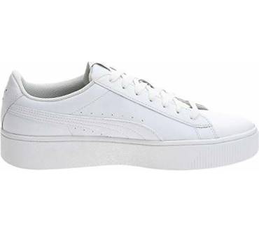 Beim Vikky Stacked von Puma handelt es sich um einen Plateausneaker für Damen. Das Stacked im Produktnamen steht für einen drei Zentimeter dicken Absatz, durch den Sie in dem Schuh etwas größer wirken. Es gibt zahlreiche Rezensionen von Kundinnen zu dem Sneaker und die meisten davon fallen sehr wohlwollend aus. Den Käuferinnen gefällt der schlichte, aber elegante Look des Schuhs. Sie können ihn mit vielen eher lässigen, aber auch schickeren Outfits kombinieren. Das Tragegefühl empfinden sie als angenehm. Es gibt aber auch immer wieder Kritik zu den gleichen Themen: Der Schuh fällt eine Nummer kleiner und auch sehr eng aus. Für breite Füße ist der Schuh weniger geeignet. Am Schaft ist der Schuh jedoch sehr weit, sodass viele mit der Ferse rausrutschen. Der Schuh ist zwar mit sogenanntem SoftFoam+ Schaumstoff in der Mittelsohle ausgestattet. Dennoch empfinden nicht wenige Rezensentinnen den Schuh als sehr steif. Das kommt wohl vor allem durch die dicke, ziemlich unflexible Sohle. Für weite Spaziergänge oder wenn Sie bei der Arbeit den ganzen Tag auf den Beinen sind, ist der Sneaker daher wohl weniger geeignet.