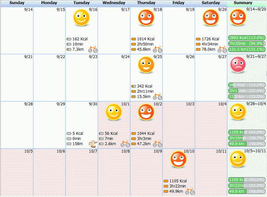 Fitnessplan in Form einer übersichtlichen Tabelle mit täglichen Trainingseinheiten, optisch aufbereitet durch Smilies und Icons. Diese helfen und ermuntern gleichzeitig dazu, den Plan auch wirklich einzuhalten.