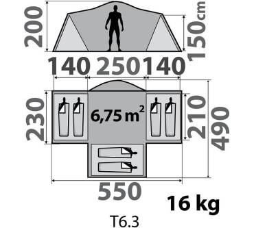 Die einfache Camping-Behausung für Familien und Gruppen mit sechs Personen hinterlässt bei den Kunden einen guten Eindruck. Es ist sicherlich ausreichend für einen Campingurlaub in warmen Gefilden. Zudem ist es schon für knapp 220 EUR bei Online-Händlern zu haben – ungewöhnlich niedrige Anschaffungskosten für ein so großes Gruppen- und Familienzelt. Wer bessere Belüftung und höheren Komfort möchte, greift zum T6.3 XL Air C.