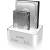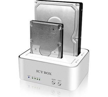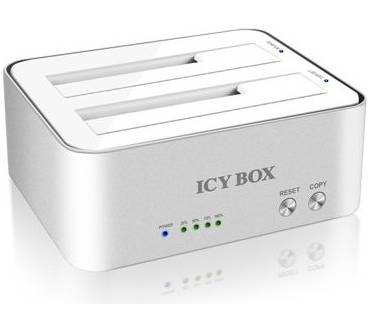 Die Raidsonic Icy Box IB-120CL-U3 ist eine externe Docking- und Klonstation für Festplatten, die sowohl 2,5- als auch 3,5-Zoll-Festplatten unterstützt. Sie verfügt über zwei Schächte und ermöglicht den direkten Datentransfer zwischen Festplatten ohne PC-Verbindung. Die Dockingstation ist mit einem USB 3.0-Anschluss ausgestattet, was schnelle Datenübertragungsraten verspricht. Das Gehäuse besteht aus Aluminium und der Boden ist mit einer rutschfesten Gummierung versehen, um einen stabilen Stand zu gewährleisten. Die Einrichtung erfolgt durch einfaches Einsetzen der Festplatten in die vorgesehenen Schlitze.