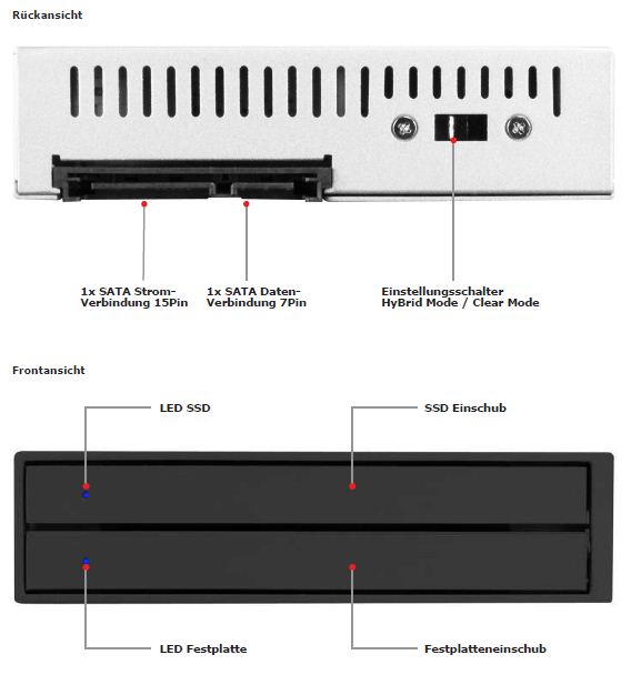 Mit dem Raidon iH2420 hat RaidSonic eine konventionelle Festplatte an eine SSD gekoppelt und vereint so das Beste aus zwei Welten. Der neue HyBrid RunneR-Wechselrahmen bietet Platz für zwei 2,5'' Festplatten, die über einen speziellen Controller miteinander verbunden sind. Die Kombination aus SSD und SATA-Festplatte soll die Nachteile der beiden gegenseitig aufheben.
