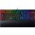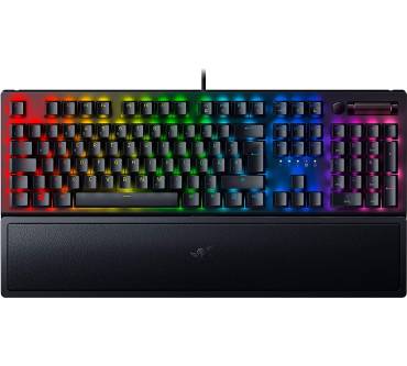 Mit der nunmehr dritten Iteration der BlackWidow hat Razer eine weitere mechanische Gaming-Tastatur ins Rennen geschickt, die mittlerweile auf Switches aus der eigenen Schmiede setzt. Die verwendeten Razer Green Switches sind taktil und geben ein klar spürbares Feedback in den Fingern. Für empfindliche Mitbewohner oder das Büro ist das ein Nachteil, wenn Sie jedoch Präzision benötigen ein Vorteil. Mit einer einzelnen Medientaste können Sie beispielsweise die Lautstärke Ihrer Musik ad hoc anpassen. In der dritten Iteration hat sich Razer auch der RGB-Beleuchtung zugewandt und setzt nun auf rundherum transparente Schaltergehäuse. Eine intensivere Beleuchtung ist die Folge. Ihnen steht eine Makrofunktion zur Verfügung, die dank integriertem Speicher auch On-The-Fly mit Makroaufnahmen gefüttert werden kann. Schön ist, dass Razer ein Augenmerk auf die Ergonomie während der Benutzung legt und die Tastatur mit einer Handballenauflage ausstattet. Mangels Polsterung fällt diese jedoch nur sehr flach und daher nicht optimal aus. Für rund 150 Euro hätte hier definitiv mehr Ergonomie drin sein können.