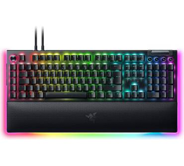 Die Razer BlackWidow V4 Pro ist eine Premium-Tastatur für Gamer. Das wird schon beim auffälligen, aber trotzdem hochwertigen RGB-Design mit vielen tollen Presets deutlich. Die mechanischen Tasten bieten ein hervorragendes Tipp-Gefühl und sind dabei dennoch leiser als die meisten Tasten vergleichbarer Bauart. Neben einer Handballenauflage gibt es dezidierte Makro-Tasten, die für anspruchsvolle Gamer besonders interessant sein werden. Zudem gibt es auch Media-Tasten, um die wichtigsten Befehle zur Mediensteuerung stets ohne Umschweife ausführen zu können. Außerdem verfügt die Tastatur über einen USB-Passthrough, an den weitere Peripherie angeschlossen werden kann. Dieser ist leider nicht sehr durchdacht positioniert. Insgesamt bekommt man hier eine wirklich gute Tastatur, die allerdings auch ihren Preis hat.