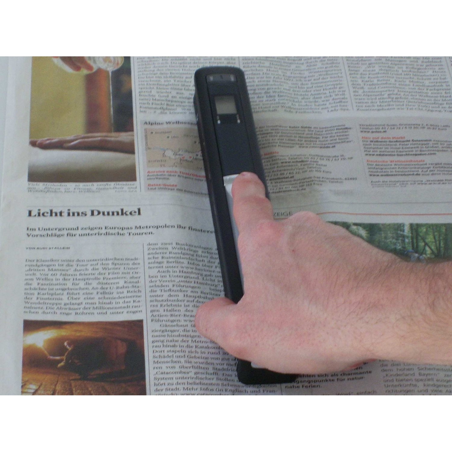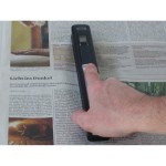 Das Prozedere selbst ist kinderleicht, zumal der Scanner nur über einen eingeschränkten Funktionsumfang verfügt. Auf Knopfdruck wird die Scan-Funktion gestartet, anschließend muss der Scanner nur noch behutsam über die Vorlage gezogen werden. Bei einer A4-Seite dauert dies etwa 10 bis 13 Sekunden. Eine rote LED leuchtet auf, wenn dabei ein Fehler aufgetreten ist, also der Scanner zu schnell über die Vorlage bewegt wurde. Der Vorgang muss dann wiederholt werden, leider werden in diesem Fall die fehlerhaften Scans trotzdem auf der SD-Karte abgespeichert. Dies ist etwas unpraktisch, denn das Auslesen der Scans kann nur am PC erfolgen. Außerdem lassen sich die Scans nicht während des Betriebs auf dem Rechner sichern, da das Gerät ausschließlich PC-unabhängig eingesetzt werden kann.
