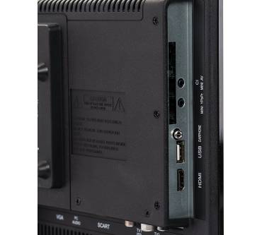 Mit der HD-ready-Auflösung ist bei dieser Display-Dimension eine anständige Wiedergabe-Schärfe hinzukriegen. Okay, der Bildverarbeitung mangelt es an der Raffinesse jener von „richtigen“ Fernsehgeräten. Anlass zur Klage besteht dennoch nicht. Ein bisschen unabhängiger von irgendwelchen Fernseh-Programmen sind Erwerber dank einem integrierten DVD-Player. Der funktioniert zunächst einwandfrei, ist aufgrund vieler beweglicher Teile allerdings mechanisch anfälliger und wahrscheinlich weniger langlebig als der Rest des Apparates. Die Schnittstellen-Ausstattung ist erstaunlich umfangreich geraten, neben HDMI- und USB-Ports stehen Klassiker wie Scart- und VGA-Eingänge zur Verfügung. An den unerlässlichen CI+-Slot wurde gedacht. Sogar ein Kopfhörer-Anschluss und koaxialer Digital Audio Out sind eingebaut. Gut bei einem internen Sound-System, welches mit einer Ausgangsleistung von 2 x 3 Watt RMS kaum in der Lage ist, Hörschäden zu verursachen - eher hat man Mühe, überhaupt Dinge zu verstehen. Äußerlich wirkt das Modell ziemlich rustikal, zugleich aber robust verarbeitet.
