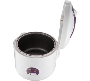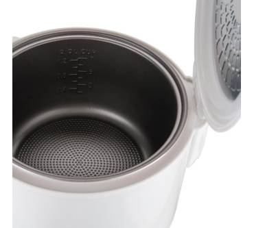 Stärken und SchwächenSehr erfreulich ist die Zusicherung des Herstellers, dass der kleine Ofen völlig frei von BPA ist. Trotzdem hat der Aluminium-Innentopf eine doppelte Antihaftbeschichtung. Und zudem eine Wabenmuster-Struktur im Boden, durch die jegliches Anbrennen des Reises komplett vermieden werden soll. Dabei bringt der Küchenhelfer mit 500 Watt ordentlich Power mit, die ein zügiges und gleichmäßiges Garen versprechen. Völlig unkompliziert ist die Bedienung an dem Schalter mit Koch- und Warmhaltefunktion. Wobei sich das Gerät, wenn das zugegebene Wasser verbraucht ist, sowieso automatisch auf Warmhaltung umschaltet. Zur richtigen Dosierung verhilft der Messbecher. Zusätzlicher Pluspunkt: der Dämpfeinsatz, mit dem man gleichzeitig noch etwas Gemüse über dem Reis garen kann.