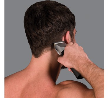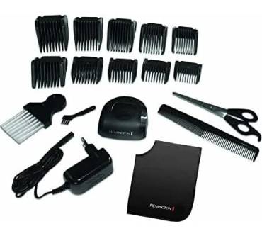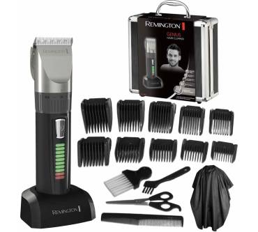 Remington bietet Ihnen mit dem Genius Hair Clipper HC5811 ein umfangreiches Set für den Haarschnitt zu Hause. Sie bekommen 10 Aufsteckkkämme mit, die Sie per Drehrad feineinstellen können. Insgesamt haben Sie so ein Schnittlängenspektrum von 0,8 bis 40 mm. Laut Nutzerberichten ist der Wechsel unkompliziert und das Gerät liegt gut in der Hand. Bei stärkerem Haarwuchs kommen die keramikbeschichteten und selbstschärfenden Klingen aber an ihre Grenzen, sodass Sie öfters über die gleiche Stelle fahren müssen. Die Akkulaufzeit ist mit 40 Minuten etwas knapp, der Ladestand wird anhand von LED-Balken angezeigt. Laut Hersteller können Sie aber auch im Netzbetrieb arbeiten. Mit im Lieferumfang sind ein stabiler Koffer Frisierumhang, Schere, Kamm, Nackenbürste und Öl, sodass man bei dem Preis von derzeit rund 40 Euro nicht meckern kann.