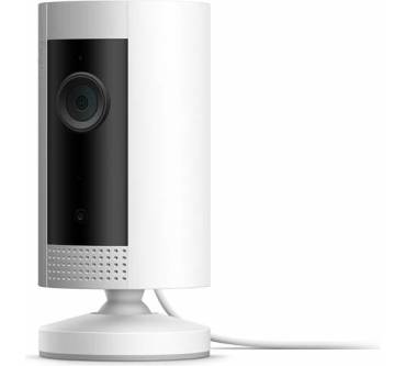 Die Indoor Cam von ring ist, wie der Name bereits verrät, eine IP-Kamera rein für Innenräume. Sie ist relativ kompakt und daher nicht allzu auffällig. Sie können die Kamera auf einen Tisch stellen oder mithilfe einer beigelegten Halterung an der Wand oder der Decke befestigen. Dabei kann die ring mit ihrem integrierten Akku betrieben werden oder hängt ganz einfach an einem Stromkabel – letzteres sollte sie auch permanent tun, denn der Akku dient in der Praxis mehr als Schutz bei einem Stromausfall. Die Full-HD-Linse hat einen recht großen Sichtbereich von 115 °, in dem sie Personen per Bewegungssensor erkennt und in der Dämmerung auf Nachtsicht umschalten kann. Dank Alexa-Unterstützung können Sie das Live-Bild zum Beispiel umstandslos auf einem Amazon Echo Show darstellen.