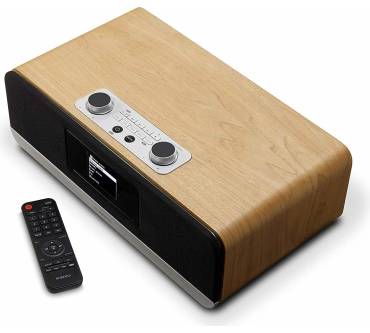 Das Roberts Radio Stream 67 ist eher Multitalent als Radio. Analoger und digitaler Senderempfang, CD-Wiedergabe, Bluetooth, Musikstreaming aus dem Netz via WLAN - prinzipiell bietet es alle derzeit denkbaren Möglichkeiten zur Soundwiedergabe. Im Streamingkontext stehen dabei beliebte (Spotify, Amazon Music, Deezer) Apps direkt zur Nutzung bereit, zumindest wenn Sie entsprechende Accounts besitzen. Ebenfalls top: Der Klang. Befeuert von jeweils zwei Tief- und Mittelhochtönern liefert das Radio beeindruckenden Sound, das Magazin "HiFi Test" beschreibt ihn als ebenso räumlich, dynamisch und pegelfest wie kräftig im Bassbereich. Abgerundet wird der gute Gesamteindruck von einem Equalizer, einem großen Display mit Farbanzeige und einem astreinen Holzgehäuse. Kehrseite der Medaille: Ein saftiger Preis von 750 Euro.