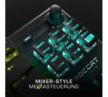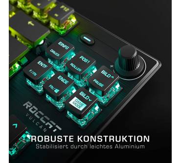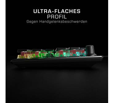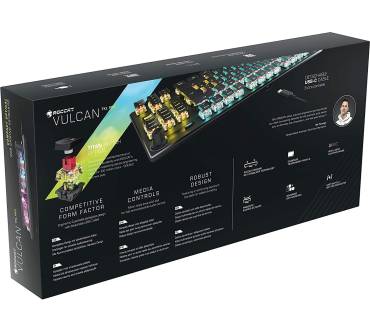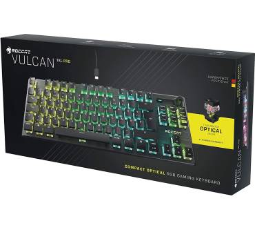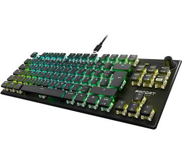 Roccat hat mit der Vulcan TKL Pro eine mechanische Gaming-Tastatur im Portfolio, die sich an die anspruchsvollere Fraktion und E-Sportler richtet. Sie kommt mit optomechanischen Switches, die extrem präzise arbeiten und einen sehr geringen Auslöseweg haben. Sie besitzen allerdings ein nur sehr geringes taktiles Feedback, wodurch insbesondere beim Tippen nicht so recht das Feeling einer Mechanischen aufkommt – das macht aber gar nichts und bedeutet immerhin, dass sie nicht ganz so laut ist, wie eine mechanische Tastatur mit blauen Switches. Die Tastatur ist recht flach gebaut und die Tasten sind an den Seiten transparent, wodurch die RGB-Beleuchtung so richtig zur Geltung kommt. Diese ist AIMO-fähig und synchronisierbar und lässt sich auch ohne Software an der Tastatur selbst verändern. Leider bietet die Tastatur keine separate Mediensteuerung sowie Makrotasten – alles muss über FN-Kombinationen erledigt werden. Der Kompaktheit halber verzichtet Roccat auf einen Nummernblock. Wer diesen nicht benötigt, freut sich so über mehr Platz auf dem Schreibtisch. Leider ist auch eine Handballenauflage Fehlanzeige. Zu einem Preis von über 150 Euro könnte man durchaus eine magnetische Auflage im Lieferumfang erwarten.