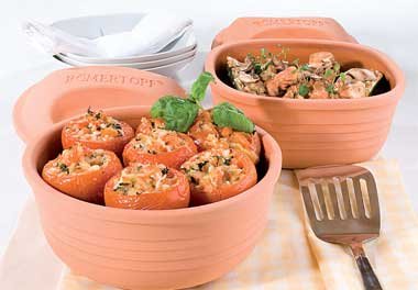 Wenn in einem Haushalt maximal zwei Personen leben, lohnt die Anschaffung eines Römertopfs häufig nicht, da schon die kleinsten Modelle etwas zu groß geraten sind. In diesem Fall ist der Multifunktionelle Bräter des Herstellers Römertopf Keramik eine ideale Alternative. Er ist deutlich kleiner und zudem in zwei Formen erhältlich, die viele besser als ein herkömmlicher Topf in die Mikrowelle passen.