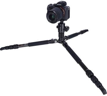 Das Lion Rock Traveler S von Rollei lässt sich auf kompakte 40 Zentimeter zusammenfalten und bringt gerade einmal 1.280 Gramm auf die Waage - gute Voraussetzungen für die Nutzung als Reisestativ. Gleichzeitig trägt es bis zu 10 Kilogramm und nimmt somit auch schwerere Spiegelreflexkameras auf. Bei der Arbeitshöhe ist dann allerdings schon bei 138 Zentimetern Schluss. Es kommt mit einem Kugelkopf mit Panoramaskala, an dem Sie auch die Friktion über ein separates Einstellrad regulieren können. Im Fachmagazin "FOTOTEST" wird neben der Stabilität vor allem die Bedienung gelobt. Außerdem findet die sehr hohe Fertigungsqualität Erwähnung, die Sie bei einem Preis von knapp 800 Euro aber auch erwarten dürfen.