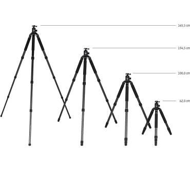 Stolze 30 Kilogramm lassen sich nach Hersteller-Angaben auf dieses Stativ verfrachten und das bei einem Eigengewicht inklusive Stativkopf von rund 2,8 Kilogramm - beeindruckend. Die maximale Arbeitshöhe ist mit 165 Zentimetern komfortabel, aber nicht überragend, zumal das Packmaß mit 67 Zentimetern recht ausladend erscheint. In Tests macht das Rock Solid Alpha Mk II Carbon seinem Namen alle Ehre und überzeugt mit einer hervorragenden Stabilität. Wenn Sie mit einer schweren Ausrüstung unterwegs sind, finden Sie hier einen zuverlässigen und stabilen Begleiter, der mit rund 500 Euro nicht zu teuer bezahlt ist. Wünschenswert wäre zu diesem Preis lediglich noch eine Einbein-Funktion gewesen.