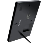 Der Bilderrahmen ist mit 10 Zoll Bildschirmdiagonale etwas kleiner als eine Papierseite im Format DIN A4. Er kann sowohl aufgehängt als auch aufgestellt werden. Videosound wird über den mit einem Watt leider recht schwachen Lautsprecher wiedergegeben. Die Liste der wiedergabefähigen Dateiformate ist mit jpeg, png und mp4 (Herstellerangaben) gering.
