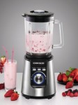 Mit seiner Leistungsaufnahme von 850 Watt gehört der Standmixer zu den Modellen mit dem kräftigsten Motor. Dazu kommt noch, dass ihm der Hersteller gleich vier Messer zum Mixen, Zerkleineren und Pürieren spendiert hat, in den unteren Klassen sind meist nur zwei Messer vorzufinden. Wie sich auf dem Prüfstand der Fachmagazine jedoch immer wieder zeigt, sind diese beiden Ausstattungsmerkmale leider keine Garantie für sehr gute Ergebnisse. Eine entscheidende Rolle, speziell für die Homogenität der Mixergebnisse, spielt nämlich die Bauform des Mixbehälters. Wird er zum Beispiel nach unten hin im Durchmesser deutlich schmaler, fallen die Ergebnisse häufig besser aus. Die Zutaten haben in diesem Fall nämlich kaum eine Chance, den Messern zu entkommen, außerdem können sie sich nicht am Boden absetzen. Das Produktbild des Rommelsbacher wiederum lässt erkennen, dass sich der Mixbehälter zu den Messern hin nicht oder nur kaum verjüngt. Man darf daher sehr gespannt darauf sein, ob der kräftige Motor sowie das vierflügelige Messer allein ausreichen werden, Top-Ergebnisse abzuliefern.Hoher Bedienkomfort