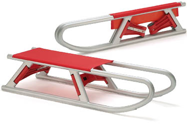 Mit dem Clap 'n' go erübrigt sich die Frage, ob der Schlitten für den Winterurlaub überhaupt noch in den Kofferraum des Autos passt. Zusammengeklappt misst der aus Alu gefertigte Schlitten nämlich nur dürftige sieben Zentimeter, sodass er sich in den meisten Fällen noch locker untergebracht werden kann. Das Zusammenklappen selbst geht in Sekundenschnelle über die Bühne und erfordert keinerlei Werkzeug. Und auf der Rodelpiste werden die Querstreben einfach auseinandergeklappt, und schon ist der Rodelschlitten fahrbereit.