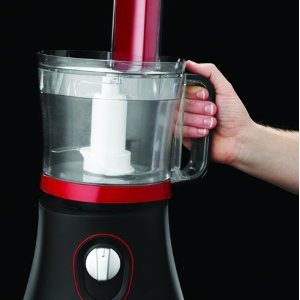 Die Russell Hobbs zählt aufgrund ihrer Bauform, die relativ wenig Stellfläche beansprucht, sondern stattdessen eher in die Höhe wächst, zu den kompaktesten Küchenmaschinen auf dem Markt. Sie lässt sich daher auch in einer kleinen Küche relativ problemlos aufstellen beziehungsweise unterbringen. An Ausstattung wiederum bringt sie alles mit, was eine Küchenmaschine für die gängigsten Aufgaben beim Kochen und Backen besitzen sollte: Mit ihr lassen sich Teige rühren und kneten sowie Gemüse und Obst raspeln und reiben beziehungsweise Lebensmittel jederwelcher Art dank eines Universalmessers zerkleinern. Der praktische Mixeraufsatz wiederum erweitert den Funktionsumfang um die Zubereitung von Fruchtsäften, Cocktails und Co, außerdem soll er sogar zum Schreddern von Eiswürfeln geeignet sein – immerhin die Königsdisziplin für einen Mixer. Der Motor leistet 600 Watt und ist daher in die Mittelklasse einzuordnen.