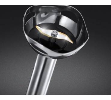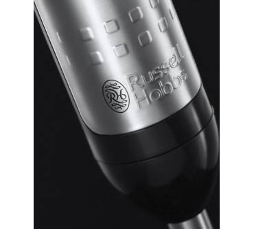 Zur Auswahl stehen dabei vier Geschwindigkeitsstufen, die laut Hersteller auch jeweils einer Zubereitungsart zugeordnet werden können, nämlich von Suppen (Stufe 1) über Smoothies und Pürees bis hin zur Stufe 4, mit der größere Mengen und robustere Lebensmittels verarbeitet werden können. Je nach Stufe leuchtet der LED-Ring blau, lila, grün oder rot. Der Mehrwert dieser Leuchtanzeige soll natürlich in der höheren Bedienfreundlichkeit liegen, die ausgewählte Stufe ist sofort auf den ersten Blick zu erkennen. Eine weitere Besonderheit stellen die Messer dar. Sie bestehen nämlich nicht nur aus Edelstahl, sondern sind titanbeschichtet, was sie härter und schärfer machen soll. Vorhanden sind zwei Messer, also die Standardausstattung, die viele Jahre die Norm bei Stabmixern war. Mittlerweile werden die meisten neueren Modelle mit vier oder noch mehr Messern ausgestattet, ob diese quantitative Aufrüstung aber tatsächlich auch in qualitativer Hinsicht sich bemerkbar macht, steht für Fachleute noch nicht zu 100 Prozent fest. Denn auch die Form der Glocke, unter der sich die Messer verbergen, spielt nachweislich eine sehr große Rolle für das Mixergebnis. Vorgängermodelle von Russell Hobbs, etwa der Stabmixer aus der Essentials-Serie, haben schon unter Beweis gestellt, dass auch sie für gute Mixergebnisse gut sind. Es darf also zumindest erwartet werden, dass das neue Modell erfolgreich in die Fußstapfen des älteren tritt. Die Leistungsaufnahme wiederum hat sich – im direkten Vergleich mit dem Essential-Gerät – fast verdoppelt, nämlich von 400 auf 700 Watt. Die höhere Leistung wird sich vermutlich vor allem bei harten Lebensmitteln sowie bei größeren Mengen positiv auszahlen.